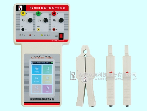 主要特點: SY3001D智能三相相位伏安表:可實時同屏顯示電壓和電流真有效值、相位、頻率、功率、功率因數(shù)等電參數(shù);除配新型小型高精度電流鉗3把外,還配備1把10A大鉗口高精度測試鉗(鉗口直徑50mm),可用于較粗導線的漏電流及相位測量;測量范圍:0-500V、0-10A,精度:電壓0.2級,電流0.5級,相位:±1.0°,測相范圍:電流5mA-10A、電壓3V-500V
