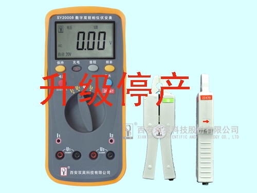 主要特點: SY2000B數(shù)字雙鉗相位伏安表:手持式,真有效值測量,自動量程,工作狀態(tài)自動識別,具有USB接口配有PC軟件;測量范圍:0-500V、0-10A,精度:電壓1.0級,電流2.0級,測相范圍:電流10mA-10A,電壓3V-500V